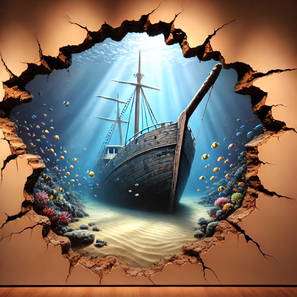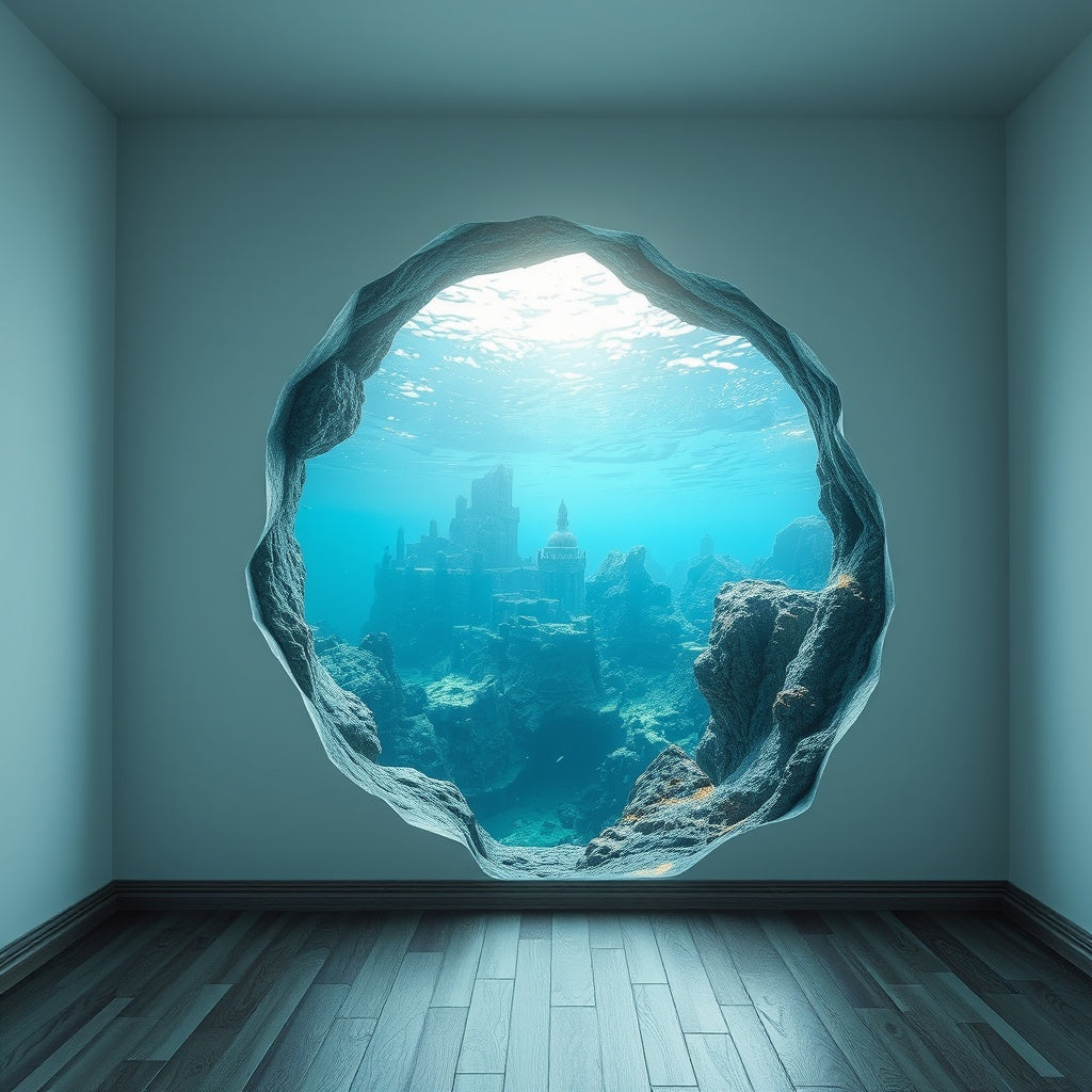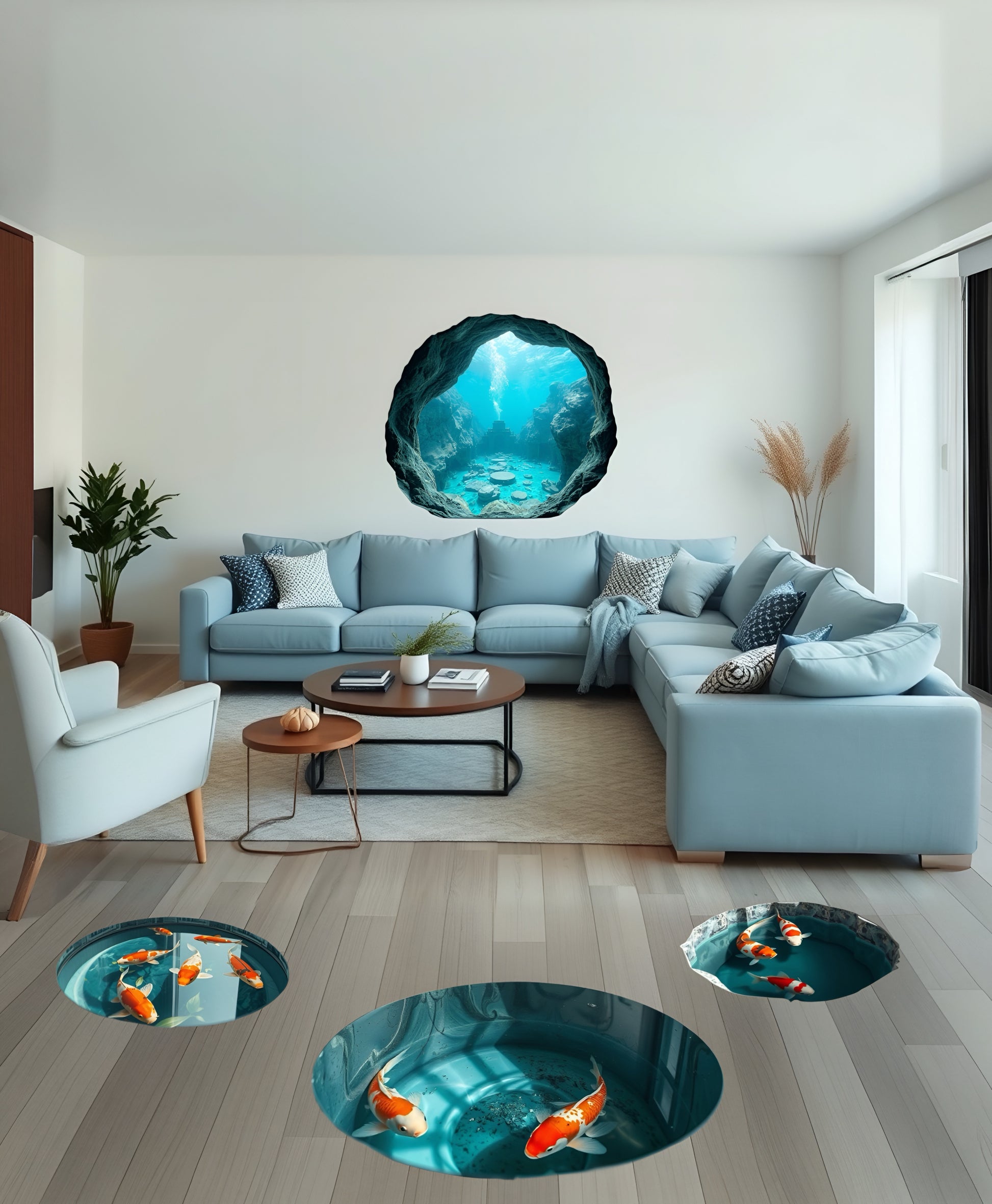 HIGH QUALITY VINYL WALL DECAL. VIEW OF UNDERWATER CAVERNS